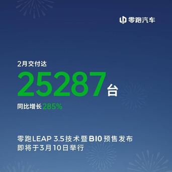 这两天,新势力品牌的2月份销量正式公布,小鹏小米冲劲十足,极氪蔚来等品牌销量都有所下滑。但这甭管你们几位的牌怎么洗吧,零跑却有种雷打不动的安稳,这不,2月又交付了25287台,同比增幅近300%,表现确实出色。